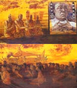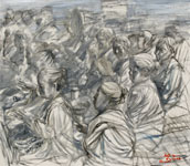 Santi Thongsuk was born in 1969 in Ubon Ratchathani and graduated from Silapakorn University in 1994. The same year, he won the first ASEAN Art Awards in Singapore for the painting 'Breath in the Capital City'. Santi Thongsuk is quite versatile in his art. He often focuses on people and human bodies - at times as victims. He sees ordinary people as victims or losers in monetary terms and political terms, cheated by politicians and others in the seats of power. Santi is a devout Buddhist who wants to show the beauty and power of human beings. In his last exhibition, he focused on the bodies, minds and power of humans to show that humans belong to the animal kingdom, and yet are distinctly different from all other living creatures. He has exhibited several times in Thailand and has also participated in an exhibition in Great Britain (1994), Singapore (2001), and was represented at the Christie's auction in Bangkok (2000) - "Important Thai Paintings".